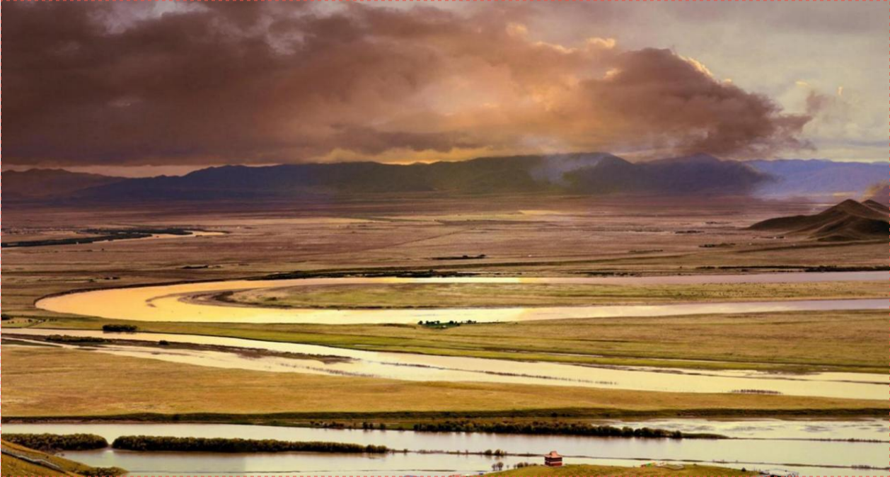黃河發(fā)源于青海巴顏卡拉山自西向東,迂回曲折,在四川若爾蓋縣唐克鎮(zhèn)與白河匯合,形成了壯美的九曲黃河第一大轉(zhuǎn)彎,但見黃白二河爭流,風(fēng)姿