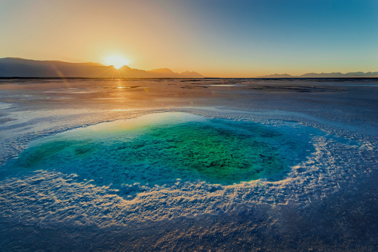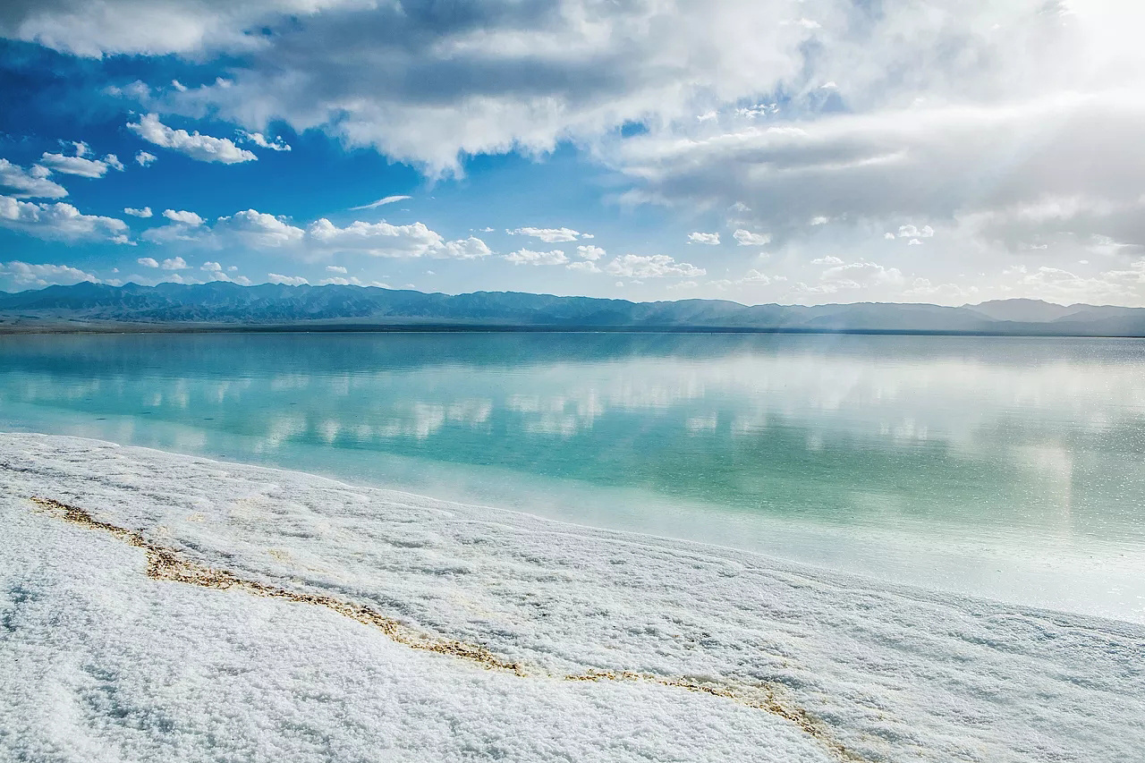 【東臺吉乃爾湖】(游覽時長約 0.5H)一個短時間風(fēng)靡全國的網(wǎng)紅景點,雖然是高原鹽水湖,但它的湖 水卻像大海一般,充斥在瞳孔中的藍(lán),更接近于翠綠色,是如同代表著幸福與浪漫的蒂芙尼寶石的高貴色澤。柔軟而潔白的湖灘是鹽的結(jié)晶,像是融化的奶酪般細(xì)膩,被很多人稱其為中國大西北的馬爾代夫。