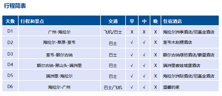 2晚海拉爾參考酒店:天成彼得酒店或洲季酒店或尼基金大酒店或同級(jí)。