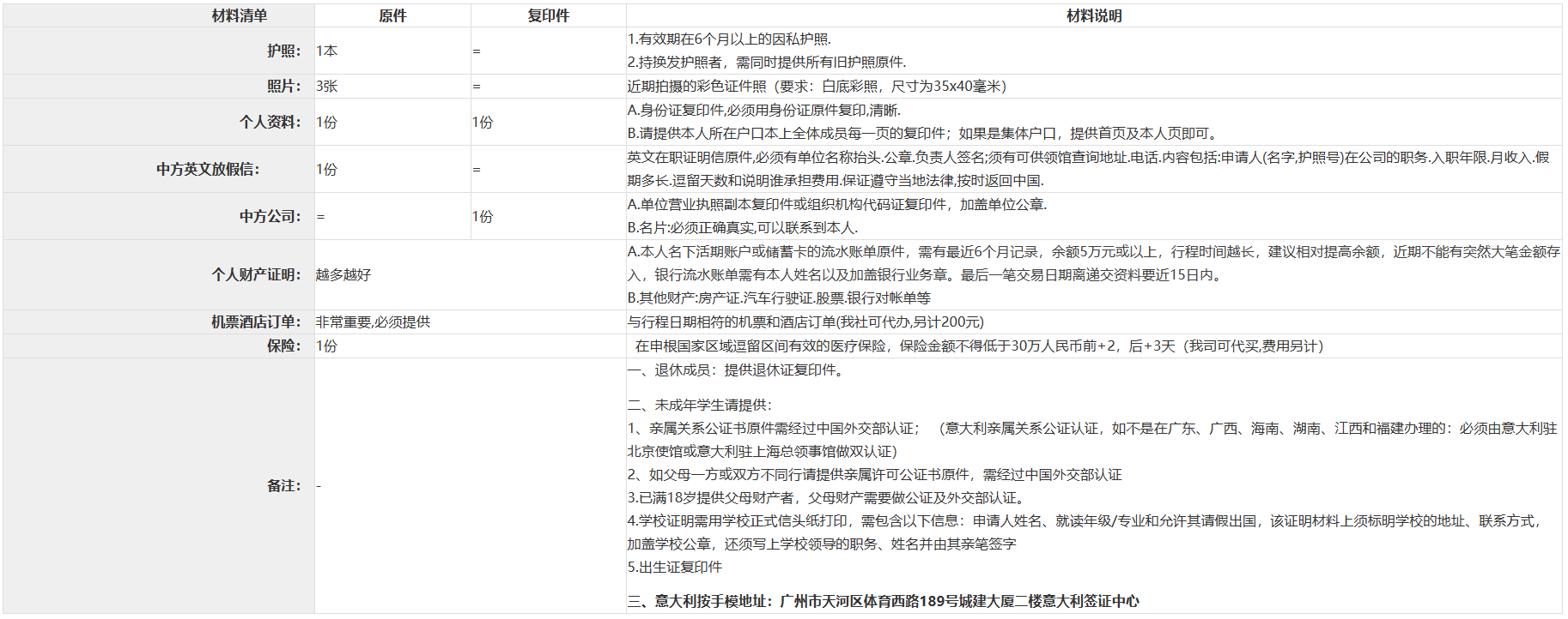 1、意大利領館要求不低于出發前15天遞交申請資料,否則需要委托代交者簽風險聲明。