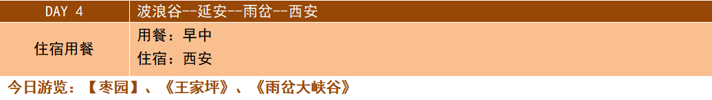 早餐后后乘車赴延安,后參觀七大會議舊址【棗園】(約30分鐘),后游覽舊址【王家坪】(約30分鐘)。后前往后乘車赴甘泉,參觀-【雨岔大峽谷】(游覽時間約2-3H),幾億萬年前,陜北發(fā)生過強烈的地震,其一座黃土大山分開一條大裂縫,又經過幾百年雨水沖刷,慢慢的形成這樣一個峽谷,這也是我們今天看到的甘泉峽谷,都說與美國的羚羊大峽谷極其相似。后乘車前往西安。