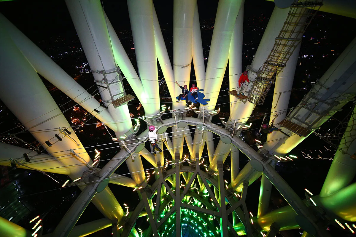 阿爾法探索樂園:包括云端漫步、凌空探險以及探索阿爾法等三大項目,集探險、團建、研學(xué)多功能于一體,以往只能在多倫多塔、迪拜塔、悉尼大橋等國外地標(biāo)上才能體驗到的項目,如今在廣州塔就能近距離深度體驗。其中凌空探險位于33層到58層之間,是廣州塔阿爾法探索樂園中極具挑戰(zhàn)性、驚險性和刺激性的重磅項目。